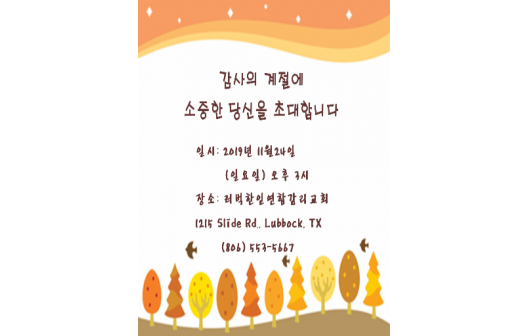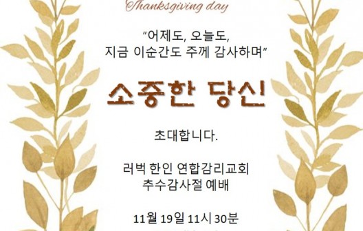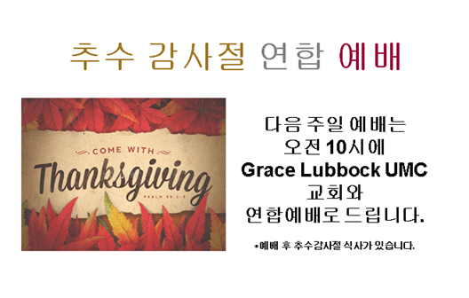 11월23일 추수감사절 연합 예배 안내