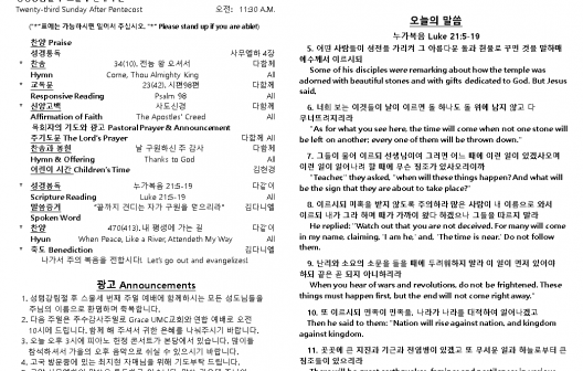 2025년 11월 16일 주일 예배 주보