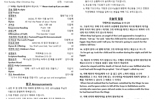 2025년 12월 28일 주일 예배 주보