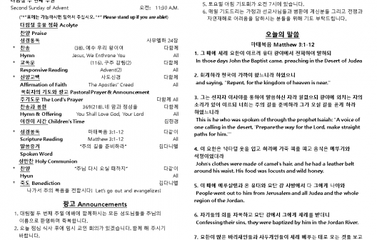 2025년 12월 14일 주일 예배 주보